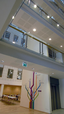 This photograph was taken by Wojciech Jachowicz, from Poland, of guideposts in a shopping centre's square. This example of wayfinding immediately caught my attention as I was scrolling down the page, simply because it looks so unique and unusual to me. In England, I don't think I have seen a similar sign, were it is just one block of colour, the design not differencing in width throughout. They are very attractive signs, however, with their warm colouring and subtle blends of patterns. I think that they would be easy to understand too, for they display clear text and the adjoining arrows make sure you know which direction to head in.